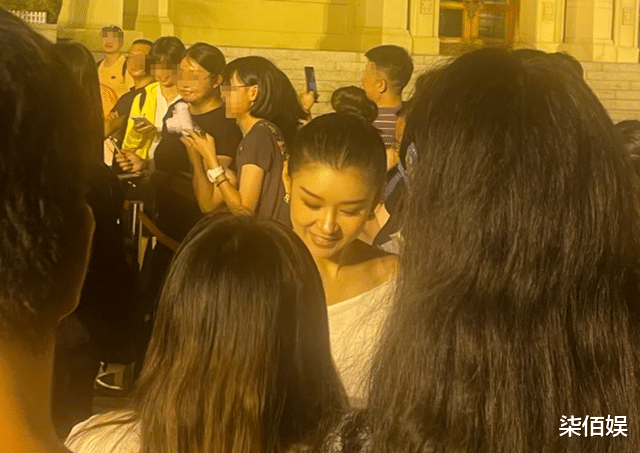 路人镜头下的李小萌扎着丸子头,脸上还是演出时的妆容,穿着一袭白色连衣裙的她,一身装扮清新可人透着满满少女感。